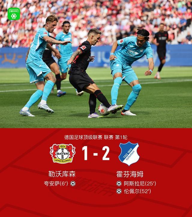 霍芬海姆逆轉(zhuǎn)勒沃庫(kù)森2-1,阿斯拉尼+倫佩爾進(jìn)球。