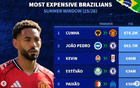 巴西夏轉(zhuǎn)會(huì)費(fèi)榜:庫(kù)尼亞領(lǐng)跑,佩德羅次之,埃斯特旺&安東尼上榜。